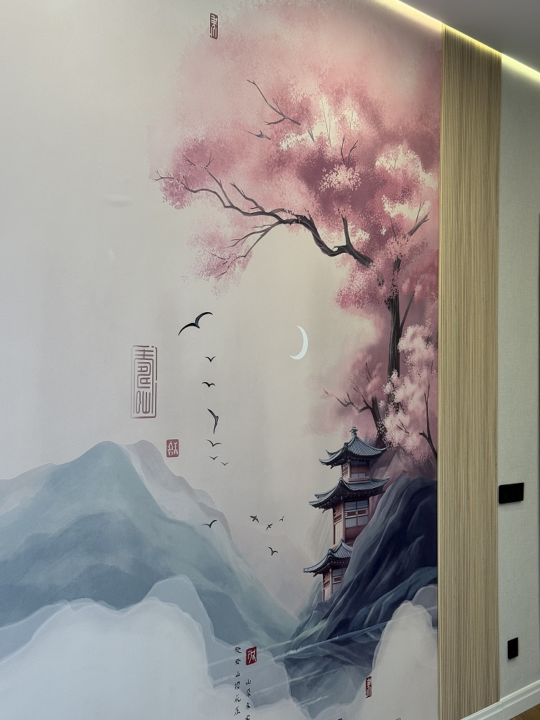 В соседней комнате раскрывается другая грань красоты - японский пейзаж с изящными силуэтами гор, с его спокойствием и глубиной, который приглашает к созерцанию. Получилось пространство, где каждый может найти свой собственный дзен –  будь то в нежном цветочном очаровании или в безмолвном величии природы!