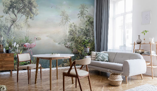 Это джунгли, прочувствуйте их настроение! В новой коллекции вы найдёте панорамные тропические сюжеты, поражающие своей глубокой «живой» перспективой, тщательной прорисовкой и цветовой гармонией. Каждый сюжет – это возможность стать ближе к дикой природе: почувствовать освежающую прохладу тенистых зарослей или палящий  полуденный зной, встречать рассветы и закаты в компании изящных фламинго, игривых попугаев и обитателей дикой фауны.