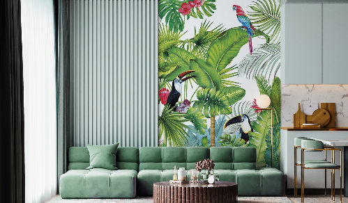Дизайны из новой коллекции «It`s Jungle» идеально впишутся в интерьеры в стиле эко, тропики или лофт. Они послужат стильным оформлением как всего пространства, так и одной акцентной стены или зоны.